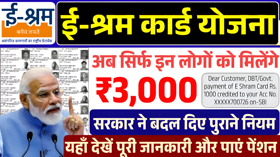E Shram Card Pension Yojana: E श्रम कार्ड धारकों को हर महीना मिलेगा ₹3000 रुपया सीधे बैंक खाते में मिलेगा